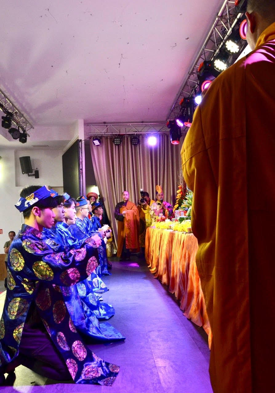 Cử hành buổi lễ có Đại Đức Thích Thông Đạt trụ trì chùa Phúc Lâm, Đại Đức Thích Chân Pháp Cứ chùa Thiền Lâm, Cộng hòa Liên bang Đức, Đại Đức Thích Từ Phước Tu viện Tuệ Quang - Cộng hòa Séc