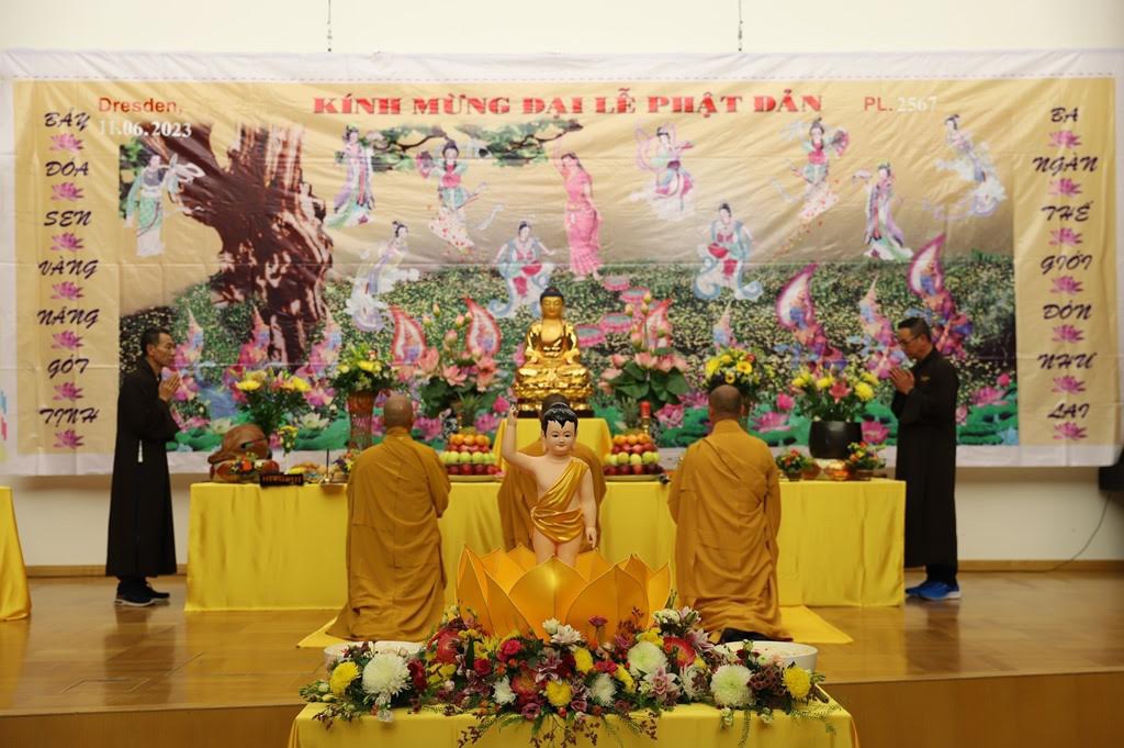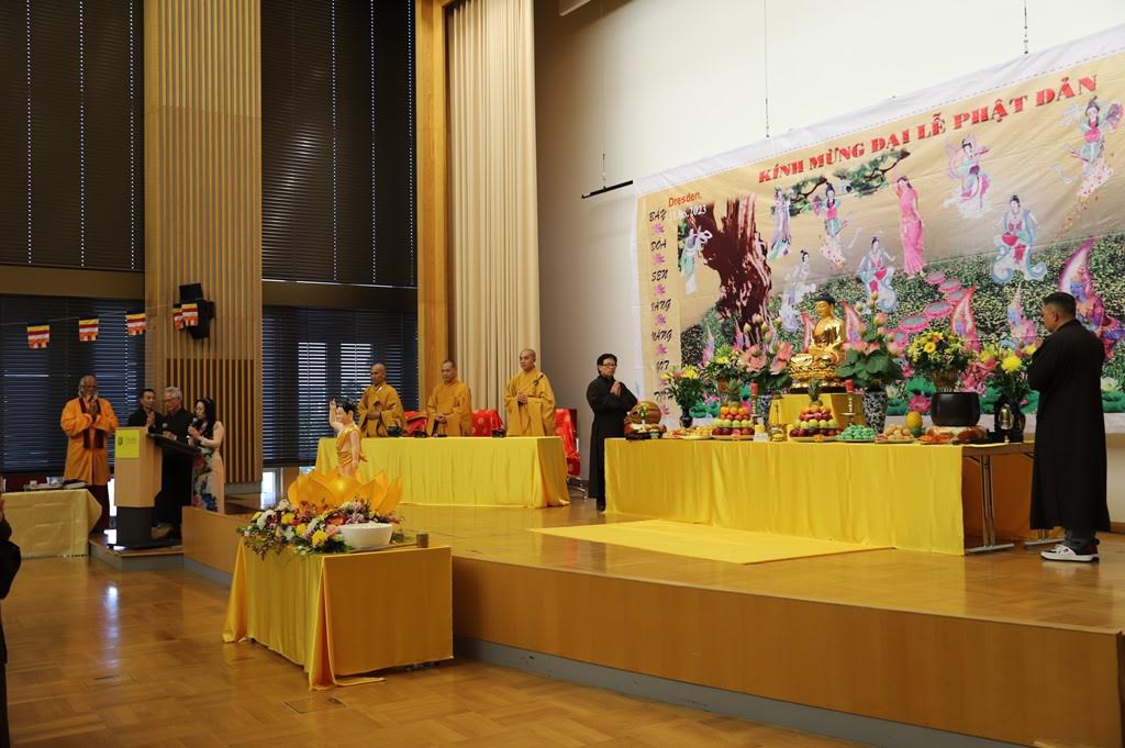 Chiều ngày 23/04 năm quí mão (11/06/2023) tại tòa thị chính thành phố Dresden- CHLB. Đức, Trung tâm Văn hóa Phật giáo Việt Nam bang Sachsen long trọng tổ chức đại lễ Phật đản PL. 2567. Chứng minh đại lễ có Thầy Thích Trí Chơn, chứng minh đạo sư Trung tâm Phật giáo, thầy Thích Trung Đạt tri sự chùa Giác Đạo, thầy Trung Tịnh giáo thọ sư chùa Nhân Hoà - Ba Lan và hơn 100 Phật tử các nơi về dự.