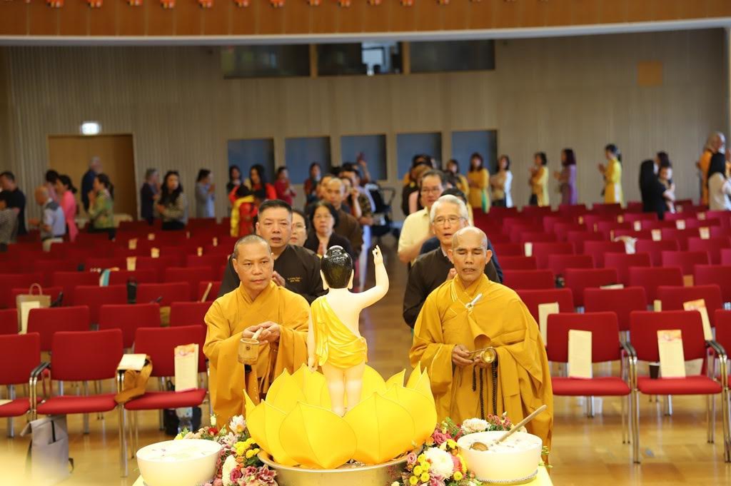 Sau pháp thoại của thầy, hội chúng đồng trang nghiêm cử hành nghi thức Phật đản- tắm Phật.